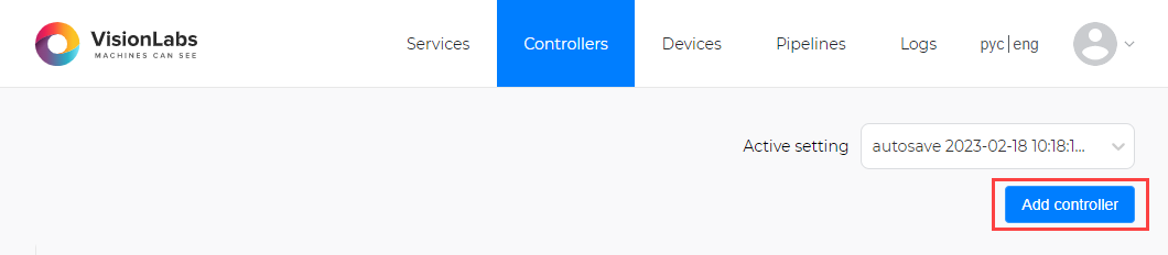 The main menu consists of the following sections: Services, Controllers, Devices, Pipelines, and Logs.