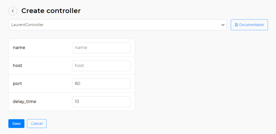 - to get information about configurable Parameters, click on the Documentation button in the upper left corner (Figure 14);