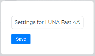 - Save settings is a function that allows user to save a new setting or save data from the active setting to a new setting, for later work with a new saved setting;