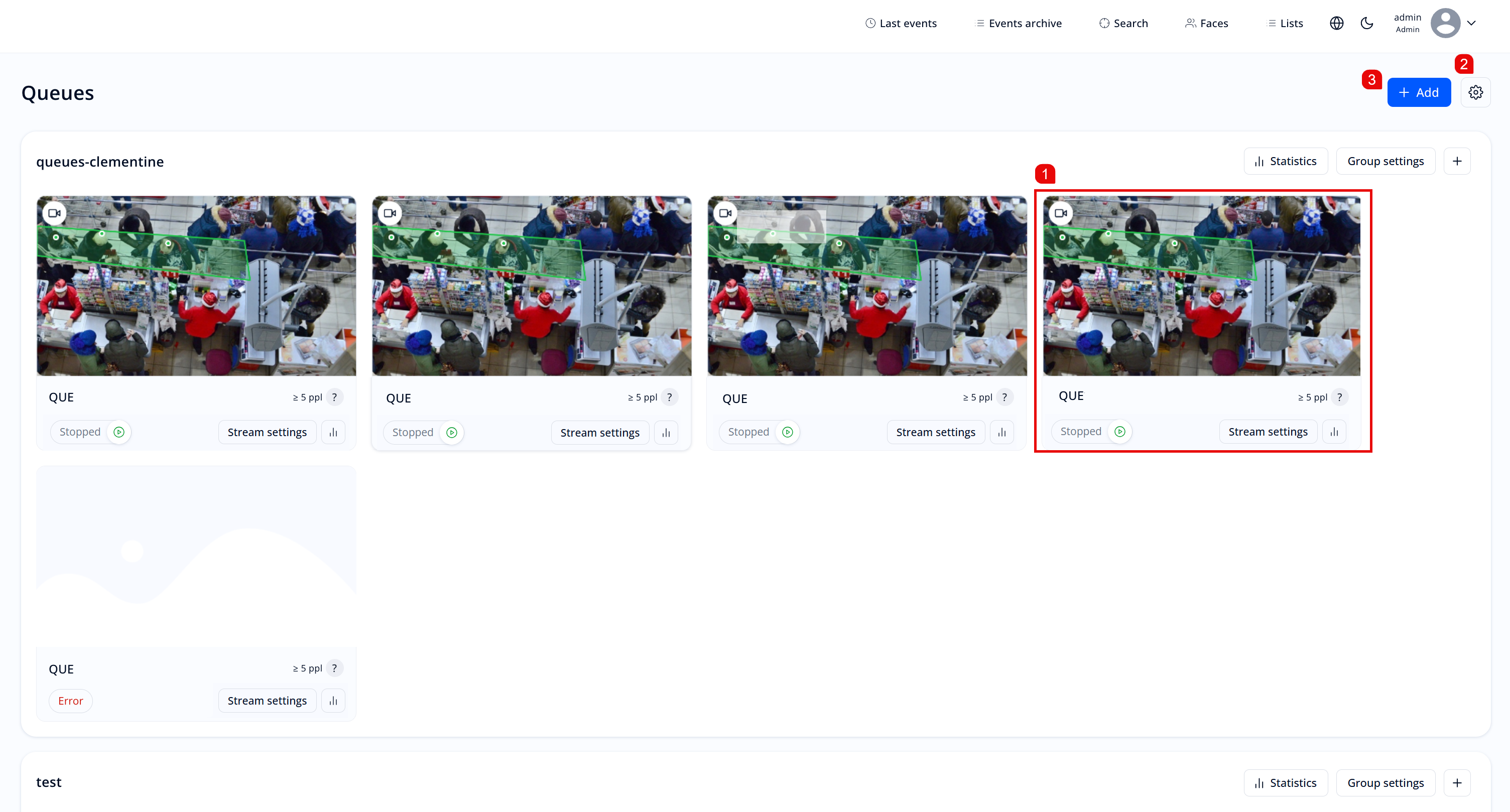 The "Queues" section is designed to manage and analyze crowds in real time (Figure 122). The section allows you to: