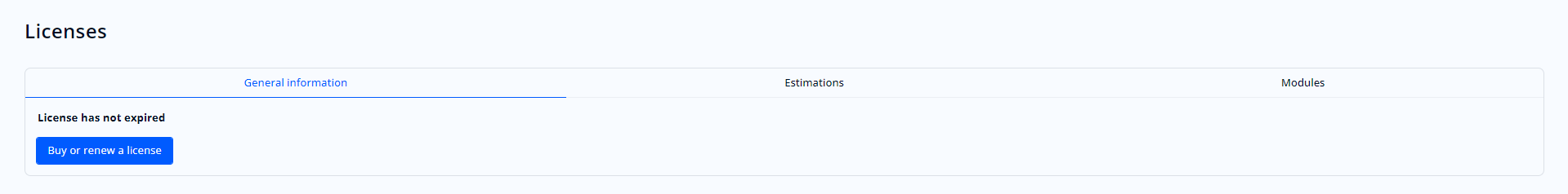 “Estimations”–shows the status (enabled/disabled) of licenses for (Figure 101):