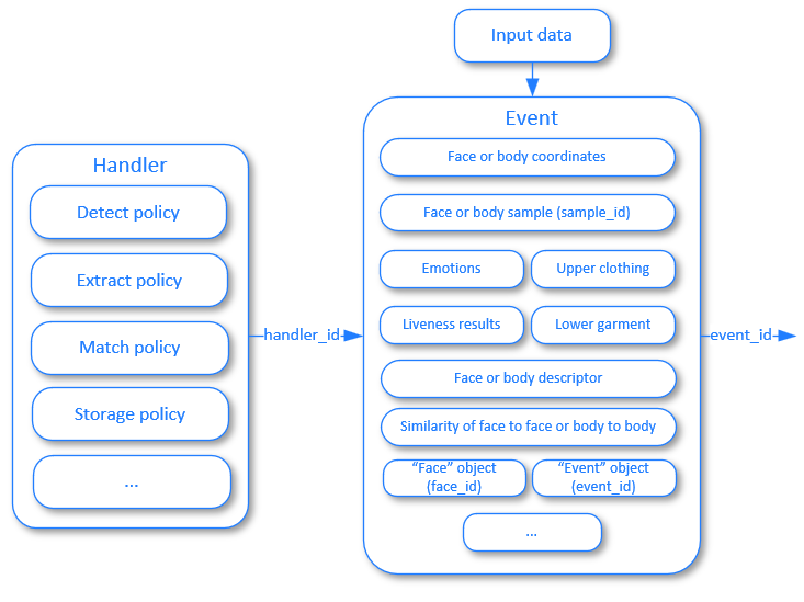 For some scenarios, it may be necessary to pre-create certain objects in the system using separate requests. For example, to identify a set of faces by a list, you first need to create a list object, link the previously created face objects to it, and then use handler and event.