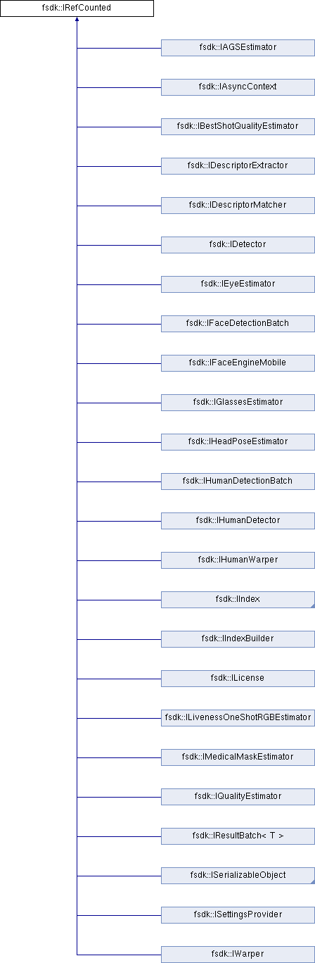 fsdk::IAGSEstimator fsdk::IAsyncContext fsdk::IBestShotQualityEstimator fsdk::IDescriptorExtractor fsdk::IDescriptorMatcher fsdk::IDetector fsdk::IEyeEstimator fsdk::IFaceDetectionBatch fsdk::IFaceEngineMobile fsdk::IGlassesEstimator fsdk::IHeadPoseEstimator fsdk::IHumanDetectionBatch fsdk::IHumanDetector fsdk::IHumanWarper fsdk::IIndex fsdk::IIndexBuilder fsdk::ILicense fsdk::ILivenessOneShotRGBEstimator fsdk::IMedicalMaskEstimator fsdk::IQualityEstimator fsdk::IResultBatch< T > fsdk::ISerializableObject fsdk::ISettingsProvider fsdk::IWarper